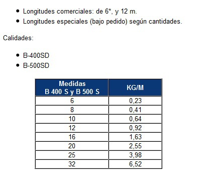 Producto de sección circular laminado en caliente, que consta de dos nervios longitudinales diametralmente opuestos y una serie de resaltos transversales en cada sector separados uniformemente. Su aplicación es para armaduras de hormigón.