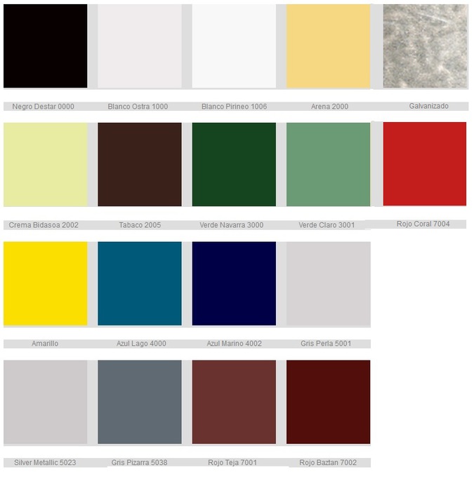 Espesores disponibles: 0,6 mm a 0,8 mm.